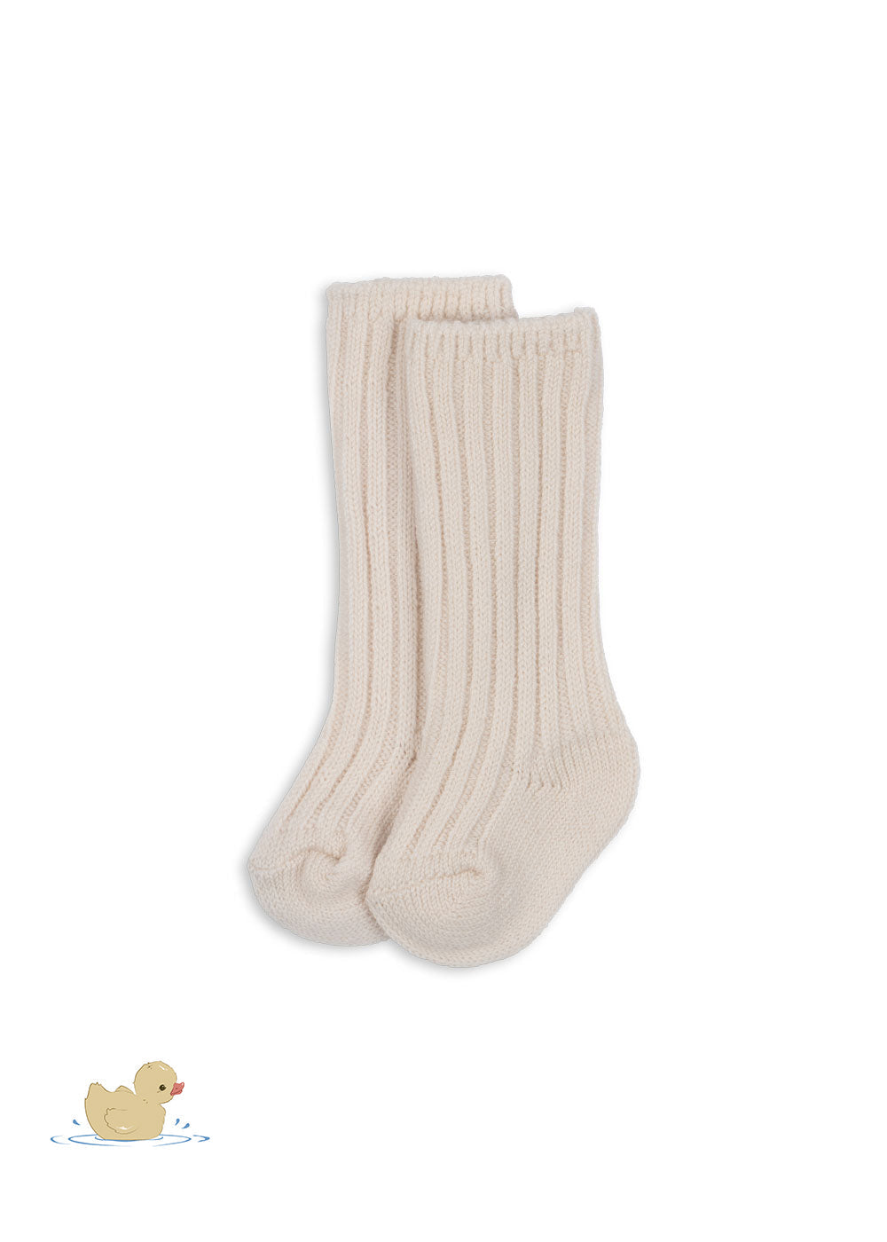 גרביים סרוגות עבות עשויות מ־100% צמר.