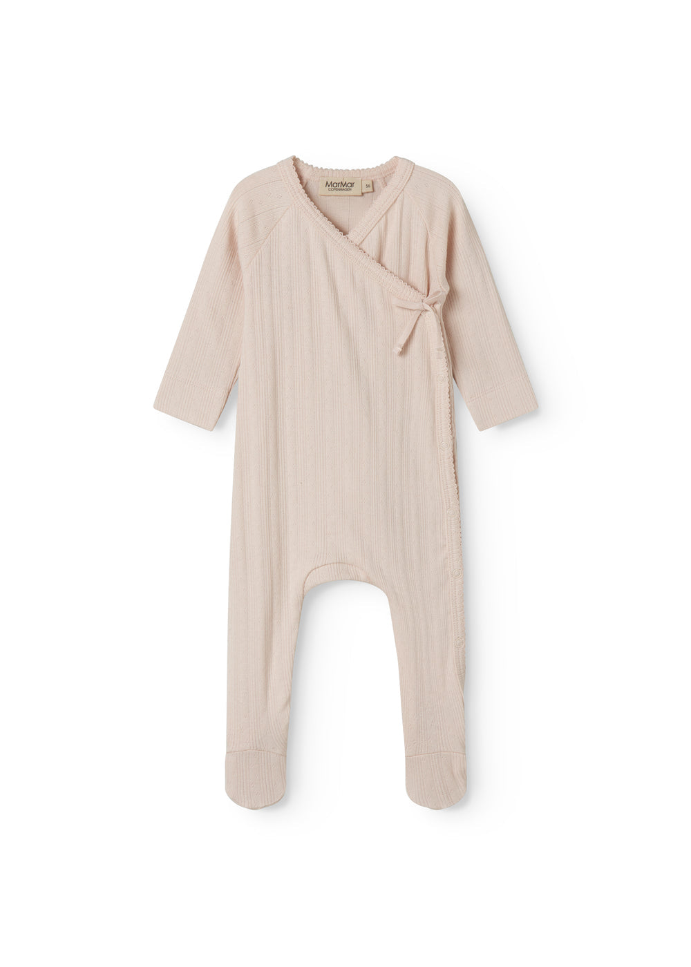 אוברול פונטל עם שרוולים ארוכים וכיסוי רגליים לתינוקות. האוברול כולל סגירה סיבובית, שוליים עם פיקוט ונעילה עם כפתורים וקשירות מהצוואר ועד לרגל אחת. האוברול רך, אלסטי ונוח ללבישה.