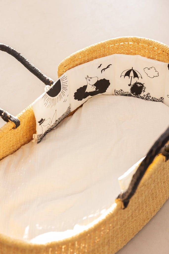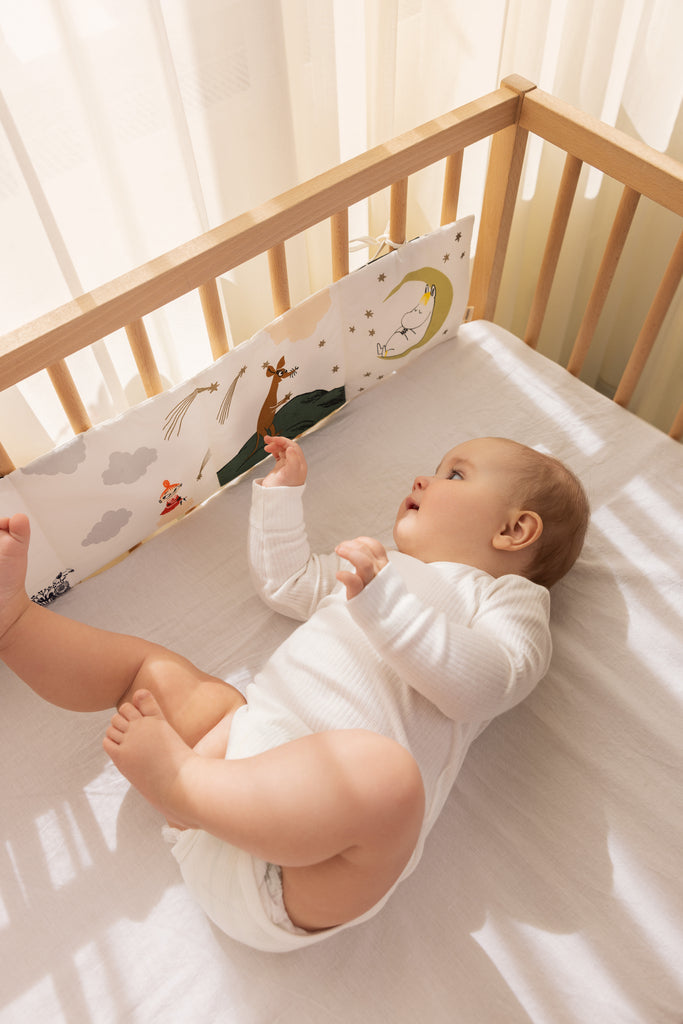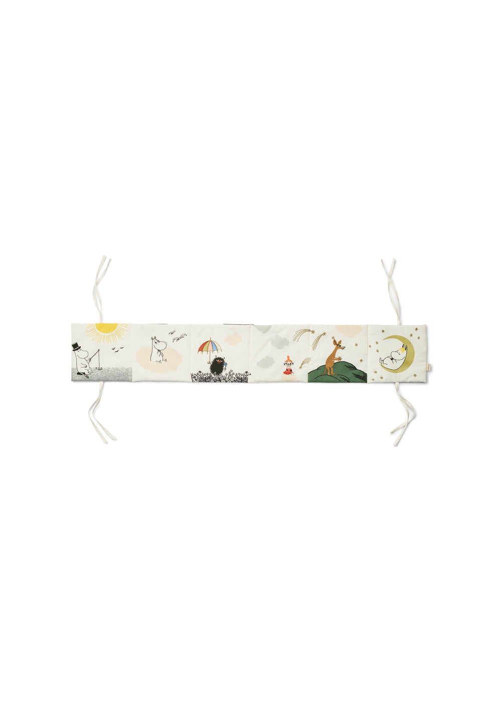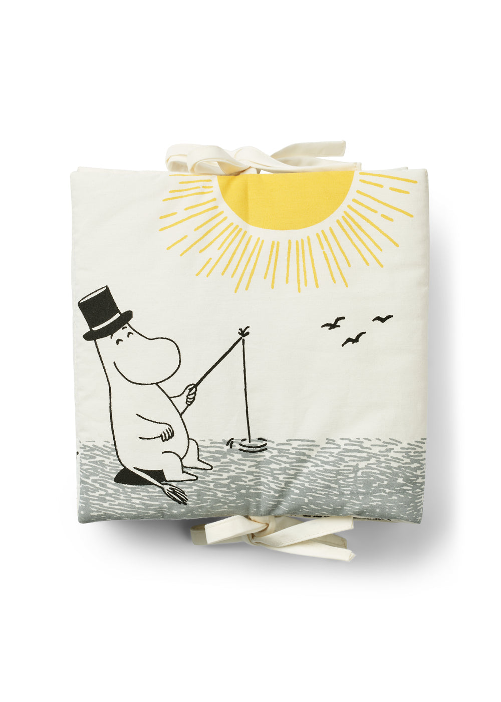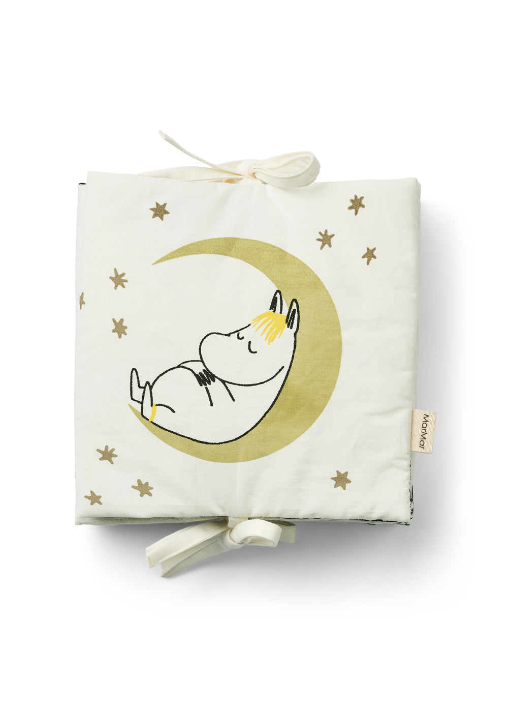 ספר פעילות רך עם איורים חמודים של המומינים, המסייעים בגירוי החושים והיכולות המוטוריות של הילד. הספר כולל ניגודים חזותיים המתאימים במיוחד לקטנטנים – צד אחד בצבעי שחור-לבן והצד השני צבעוני. מצויד ברצועות לתלייה.